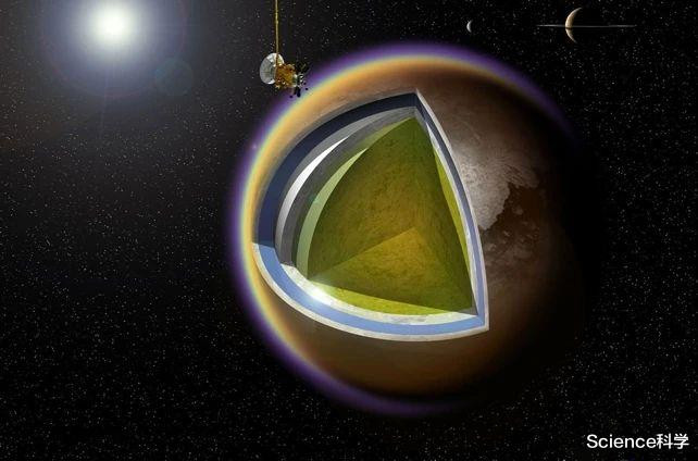 从表面看,土卫六的温度低至-179℃(-290℉),甲烷在这样的低温下会液化,形成类似地球五大湖的“甲烷河”和“甲烷湖”。而在这层“甲烷外衣”下,土卫六的内部结构更像一颗“行星级太妃糖”——根据卡西尼-惠更斯探测器的数据,它由五层组成:最核心是岩石层,往上是高压下才能存在的“冰-VI”(一种特殊的冰形态,仅在极高压力下稳定),再往上是咸水构成的地下海洋,最外层则是约100公里厚的水冰壳。