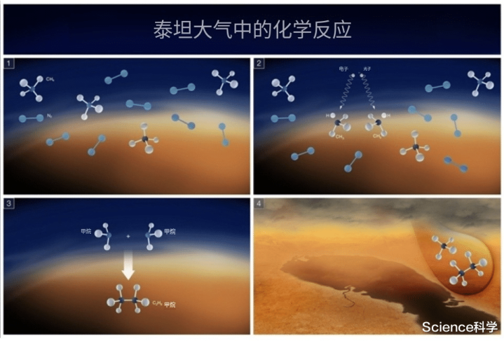更关键的是,土卫六的大气中不断生成复杂的有机分子。太阳紫外线会分解大气中的氮和甲烷,这些碎片重新组合后,形成富含碳、氧的大分子有机物。它们或像“甲烷雨”般落在地表,或凝结成颗粒沉降,最终在表面堆成深色沙丘(看起来像咖啡渣堆成的小山)。